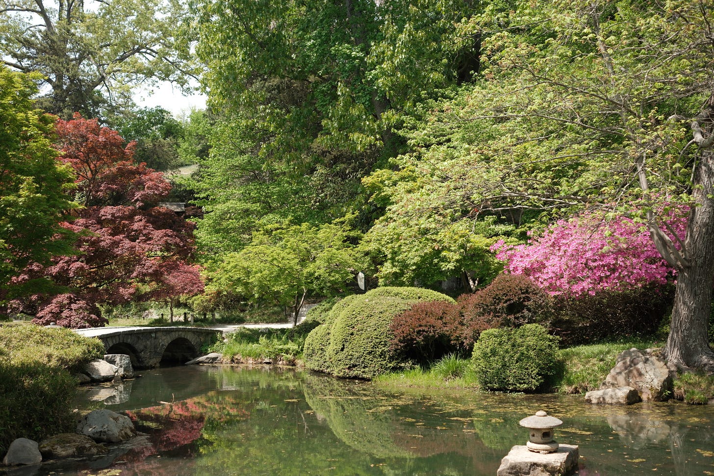 One of the best parts of our brief stay in Richmond was wandering down a hill at Maymont and discovering a Japanese garden, nestled around a small lake and tucked away like a secret. With so much to look at and take in, I nearly missed the enormous bullfrog hidden amongst the cypress knees. But once I spotted it, I noticed another one, and another, then three more a few feet farther down the path, and I don’t know why, but these little guys absolutely made my day. Oh, to be belly-deep in cool water on a ninety-degree afternoon.