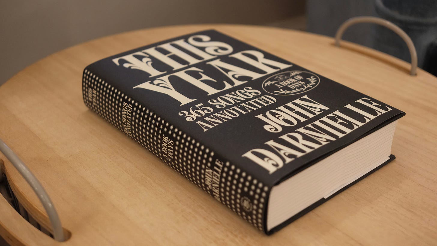 We preordered a signed copy of John Darnielle’s new book, This Year, from The Regulator bookshop in Durham back when it was first announced, and since it finally released this past Tuesday and we happened to be nearby, we got to pick it up on Wednesday. The subtitle is “365 Songs Annotated: A Book of Days”—enough Mountain Goats lyrics and commentary to last a full year!—so I read the preface material out loud to Jordan in the car on our way back to Winston and we decided to work our way through the rest, devotional-style, starting on January 1st. I’m very much looking forward to this little project.